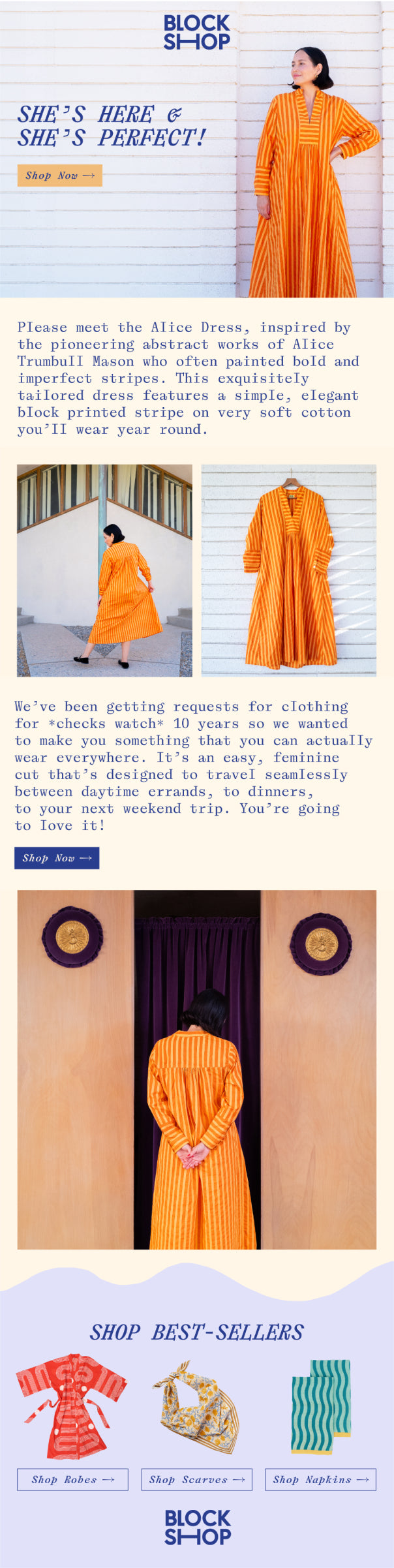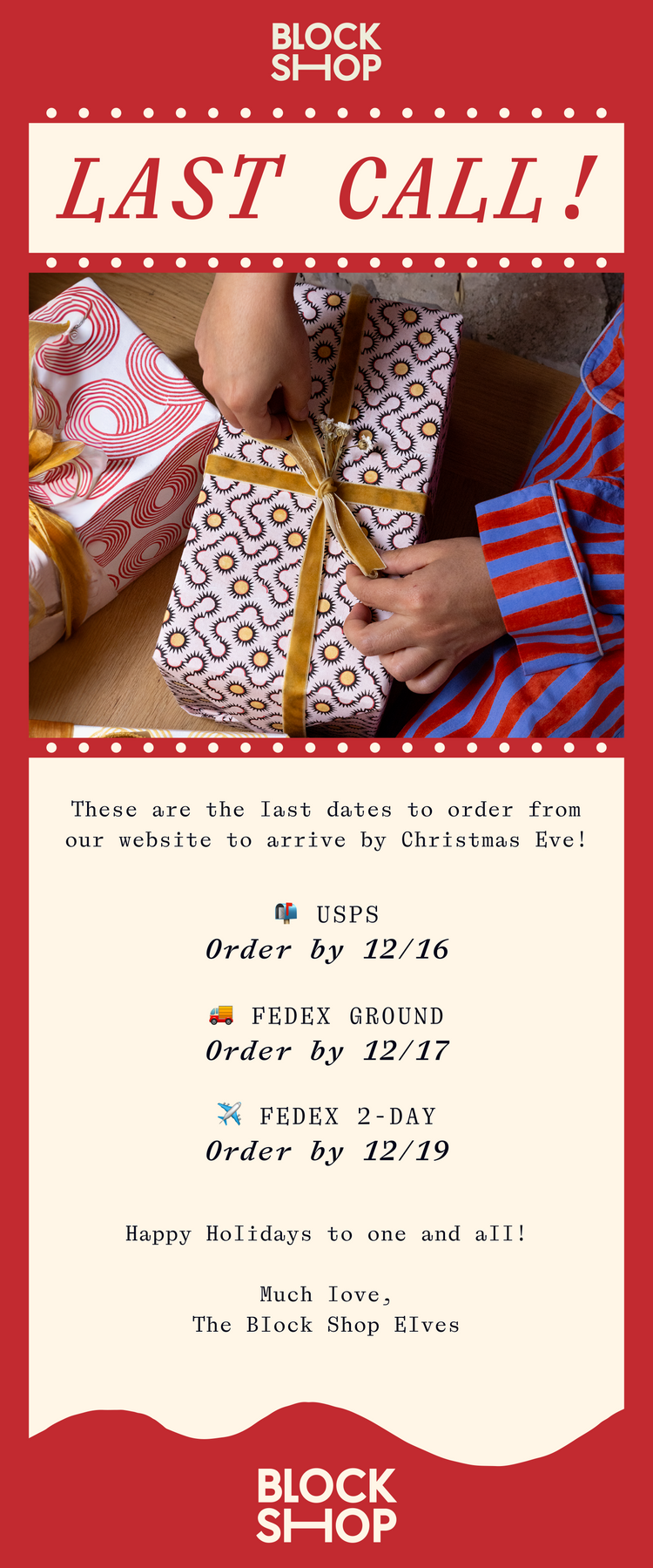 Block Shop is a textile and design studio based in Los Angeles, known for its vibrant prints, architectural patterns, and commitment to ethical production.