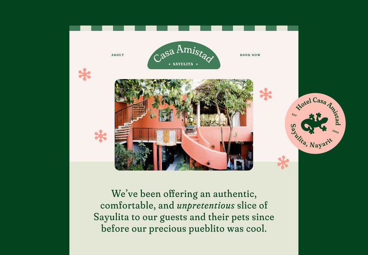 We partnered with Casa Amistad to refresh their branding and design a website that captures the warmth, magic, and laid-back charm of the place.